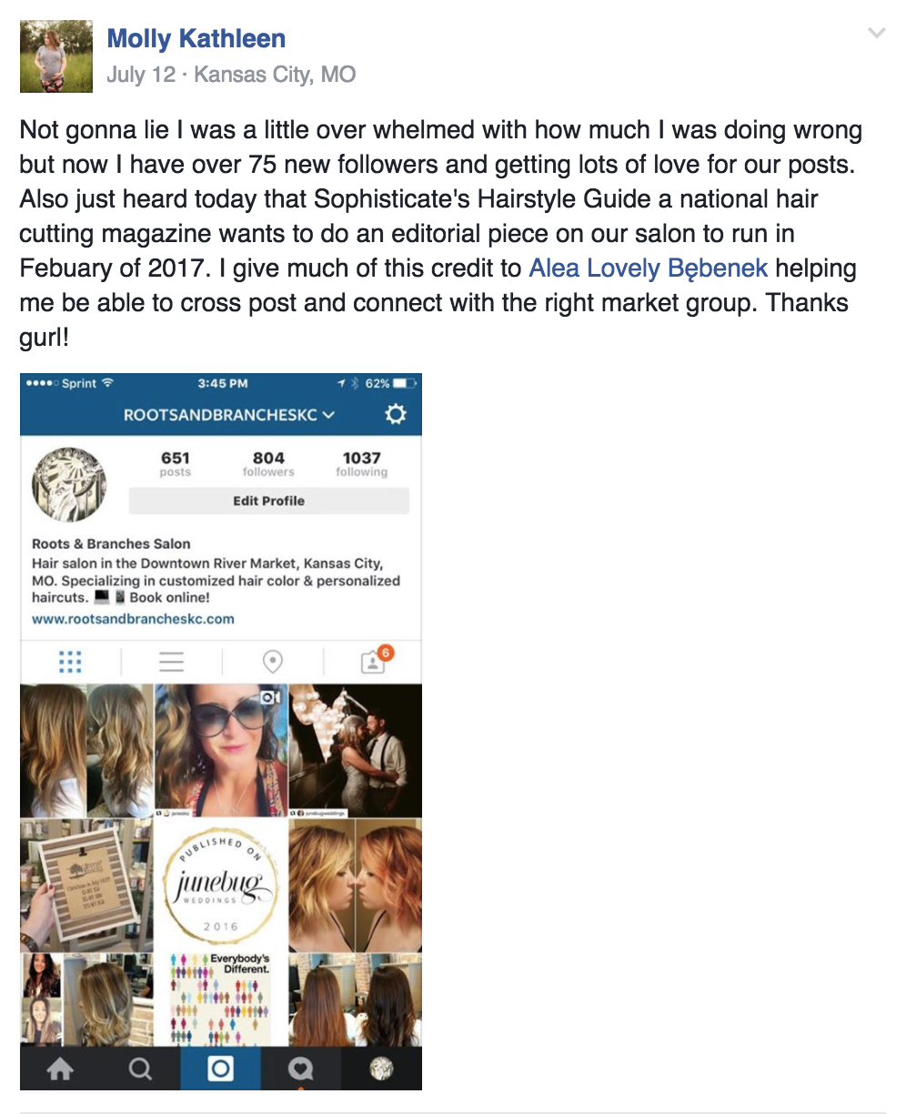 AFTER. I took the images, and then did the overhaul to their Instagram including posting, finding marketable hashtags, following accounts that would up their presence, and training them on how to maintain a beautiful feed that will help gain followers and new clients.